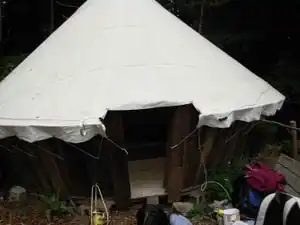 This project has been dismantled due to problems such as water not being captured, and the water that was captured sitting and compounding the mold problem on the roof of the yurt. Another attempt will be made learning from the lessons of this project.