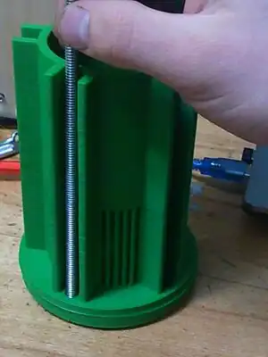 A Cassava Press, or a general food press, is a tool used in many parts of the developing world for increasing the longevity of food by pressing part, or all of the liquid out of the food. Many cassava presses are very large (about the size of a washing machine) and allows for the village people to preserve a large amount of food at once, either for personal use or to sell in their micro-economy setting.[1] The cassava press designed as a piece of open source hardware is a small scale press that could be used in a household, or for personal use if needed. Additionally, with minor design changes the press design could be adapted for other uses, such as for pressing ash to form activated carbon filters for use in rudimentary water filters.