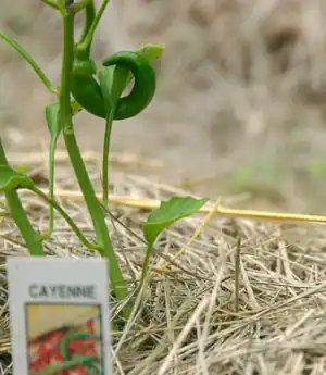Growing cayenne pepper plants requires some heat. Chilies are mostly perennial in their native habitat of sub-tropical and tropical regions. If you live in an area that has a long growing season and a lot of sun, you may directly sow seeds in the garden 10 to 14 days before the last frost date. In temperate areas, chilies are grown as annuals, so when starting cayenne pepper plants from seed, it's best to do so indoors or in a greenhouse. They are very delicate and react badly to overly hot or cold weather. Sow the seeds in light, well-drained soil medium and keep in a sunny location at a temperature of at least 60 degrees F. (16 C.) until the seeds sprout in 16 to 20 days. Plant the growing cayenne pepper seedlings into flats spaced 2 to 3 inches (5-8 cm.) apart or in individual pots and allow to gradually acclimate or harden to outdoor temperatures. Generally, outdoor transplanting should occur six to eight weeks after the seeds are sown, or after all danger of frost has passed, however, if you choose to transplant before the weather is frost free, it is advisable to protect the plants with row covers, hot caps, and/or transplant the peppers through black plastic. To prepare for transplanting the cayenne pepper plants, amend the soil with fertilizer or organic compound, if need be, avoiding too much nitrogen in an area of full sun to mostly full exposure. Plant your pepper babies 18 to 24 inches (46-61 cm.) apart in a row.