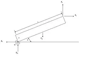 The forces on the Chicken Tractor are being evaluated to determine how much effort will be required to move it. It is assumed the system will be lifted from one end and dragged on the back tracks, so the whole thing makes an angle with the ground. The free body diagram for the system can be seen bellow in figure 5.