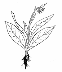 'Allantoin is a fresh instance of the good judgment of our rustics, especially of old times, with regard to the virtues of plants. The great Comfrey or consound, though it was official with us down to the middle of the eighteenth century, never had a very prominent place in professional practice; but our herbalists were loud in its praise and the country culler of simples held it almost infallible as a remedy for both external and internal wounds bruises, and ulcers, for phlegm, for spitting of blood, ruptures, haemorrhoids, etc. For ulcers of the stomach and liver especially, the root (the part used) was regarded as of sovereign virtue. It is precisely for such complaints as these that Allantoin, obtained from the rhizome of the plant, is now prescribed. One old Syrupus de Symphyto was a rather complicated preparation. Gerard has a better formula, also a compound, which he highly recommends for ulcers of the lungs. The old Edinburgh formula is the simplest and probably the best: Fresh Comfrey leaves and fresh plantain leaves, of each lb.ss.; bruise them and well squeeze out the juice, add to the dregs spring water lb.ij.; boil to half, and mix the strained liquor with the expressed juice; add an equal quantity of white sugar and boil to a syrup.'
