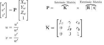 - 3×1 translation vector t using a set of known 3D points (Xw, Yw, Zw) and their corresponding image coordinates (u,v).