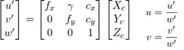 The pixels in the image sensor may not be square, so we use two different focal lengths fx and fy. The optical center (cx,cy) of the camera may not coincide with the center of the image coordinate system. In addition, there may be a small skew between the x and y axes of the camera sensor. With that in mind, the camera matrix can be re-written as: