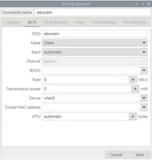 Now that Network Manager has been enabled we have more freedom over how each WiFi network is configured and can connect to WPA2-Enterprise networks.