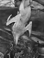 Though geese were a common sight on many Ozark farms of the past, they were not used for food as much as for their feathers. It was for those Ozarkians of German descent to appreciate and include goose on their tables. Ella Hough said her mother, Louise Schneider, felt she had not adequately celebrated a holiday or birthday in their home if goose wasn't the main dish. To keep a steady supply she raised geese every spring. In late fall she would pen them up to fatten on grain so that the first would be ready to dress out by the eleventh of November, Ella's father's birthday. When the weather got cold enough, her mother would dress out half a dozen or more geese to hang in the smoke house. Frozen they would keep for Thanksgiving, Christmas and other special occasions.