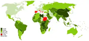 - ↑ Although a convenient shorthand, the "South" is a inaccurate term as it suggests that the developing nations are further South than the developed nations. Consider Australia and Mongolia as two obvious counter-examples. Further, consider Albania, Japan and Malaysia as counter-examples to the idea of countries in the same region belonging to the same economic class.