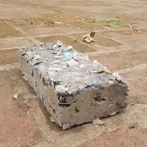 Plastics bottles are washed and dried as they are used, generally as a community effort. Each family unit of the community then stores the plastic bottles, and begins depositing waste in the bottles. The types of waste that go in the bottles include plastic bags, aluminum foil, and Styrofoam. None of the contents may be wet or dirty. The material is then compacted as the bottles are filled. Figure 2 shows what the final bottles look like before being integrated with the ladrillo. The bottle is a component used as a filler in a ladrillo. In an alternate method plastic bottles are filled with a dry clay material.[2]