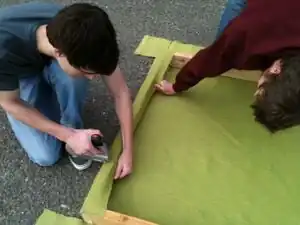After cuts have been made. Stretch fabric over frame and staple. Depending on the fabric the may require multiple people and/ or stretching processes.... (Photo by Michael Harrow)