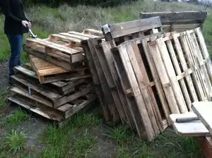 Find some pallets to build the frame of the composter. Pallets can be found almost anywhere that receives freight. One of the best places to search are hardware stores, who will often give away the pallets for free.