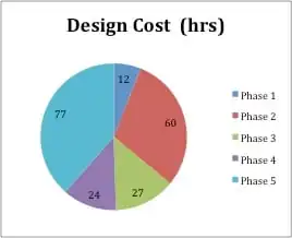 The design cost accounts for the total time the group spent on the project outside of class. The combined times sum up to about 200 hours, most of which can be attributed to Phase 5 of the design process. The figure below shows the distribution of hours allocated to each phase.