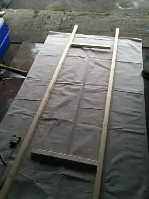 Build the frame using two 8' members and two 19 members. Measure out and mark drill holes. Drill holes for the screws.