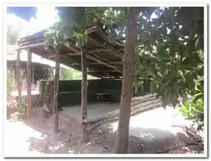 Each hut (where guests stay) has a composting toilet, whose base is concrete and with a depth of one meter. Each toilet consists of two compartments, so when one is full, the toilet seat is switched to the other compartment. As with most compost toilets, sawdust is used. This helps to ease the use of water. Within about a month the compost is done and ready to use in the garden.