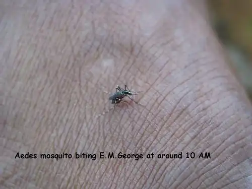 AEDES AEGYPTI MOSQUITO THAT SPREAD ZIKA, DENGUE ETC. BITING GEORGEDAPPILLY (alias George E M) AT 10AM