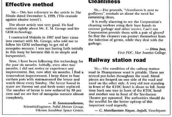 In READER'S MAIL, The Hindu,Jan10,2000