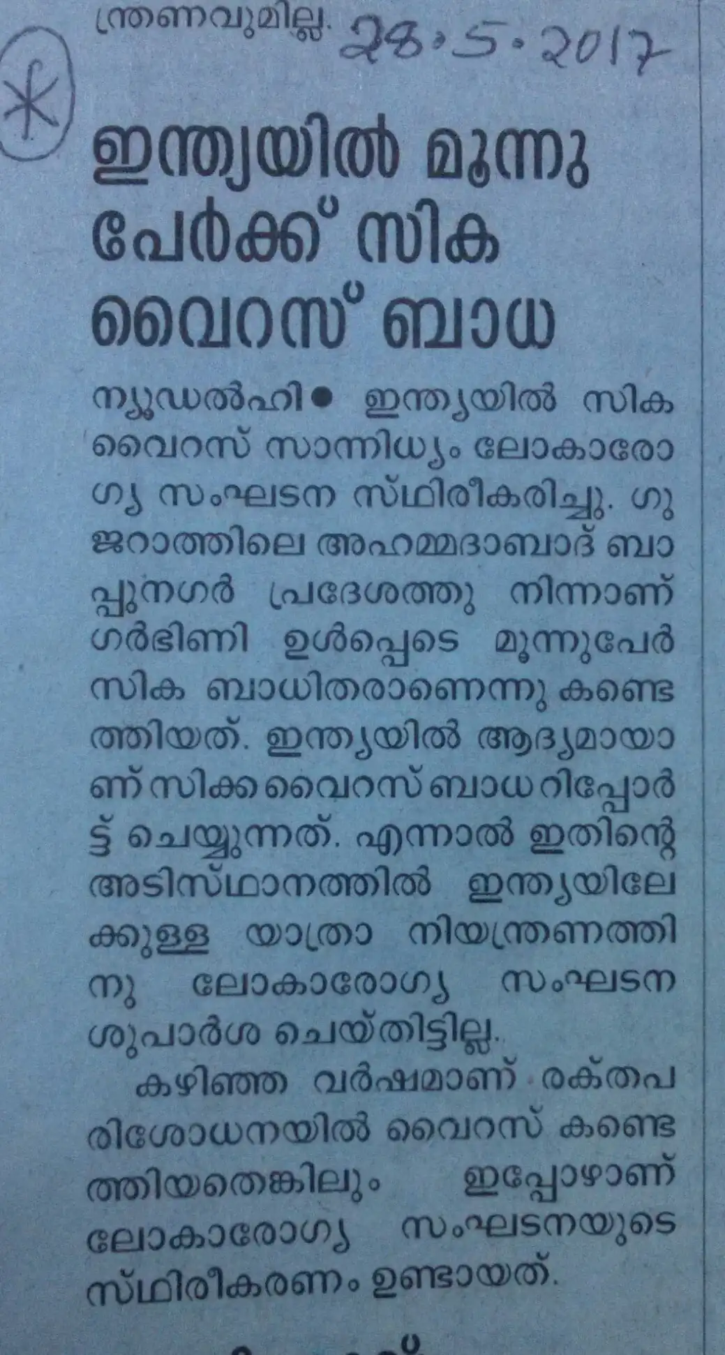 - Zika fever, confirmed by W H O in Delhi 2 years ago (in 2016). It is awaiting the next fever season here (Keralam)!