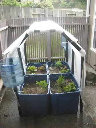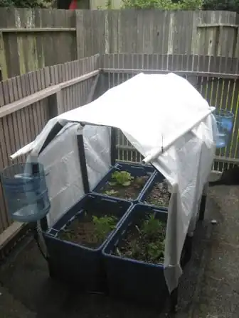 Now is a good time to add soil to the containers and plant vegetables, herbs, etc while there is plenty of access to the garden plot before adding the greenhouse sheeting. |