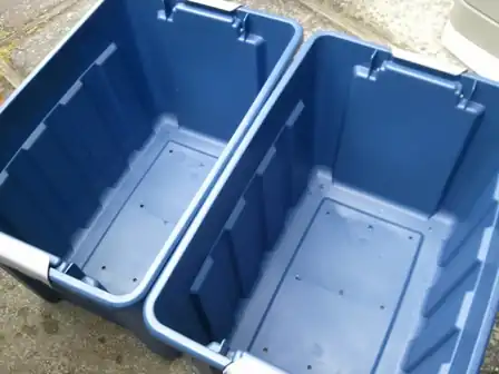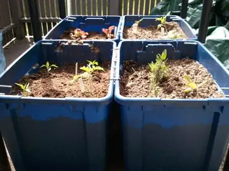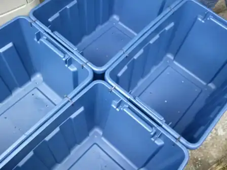 Using a power drill with an adequately sized drill bit drill 12-20 holes spread about the bottom of each container. Drill 12-20 more hole's along the sides near the base of each container. |