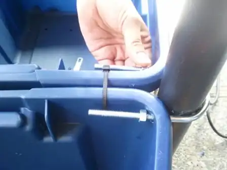 Drill holes through rims of the containers where zip-ties can be seen. Use 8 zipties to secure the container base together. |