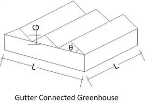 In order to determine the size of a greenhouse which can be supported by this amount of waste heat, a parametrized equation to solve for the linear dimension of a square gabled greenhouse was derived and is given by: