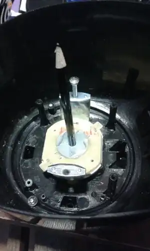Inside of the blender base. This opening is where the threaded rod will come through. The rod will be reinforced to keep it from moving and becoming offset.
