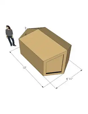 We started with a stretch 6’ hexayurt and replaced one of the half-pyramid assemblies with H13 style 6’ tall walls and flattened roof:
