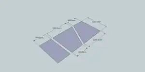 - Two end panels and one side panel (that's three pieces) are cut from a single sheet. Do that twice. The side walls (S) are 1/4 of a sheet (1200x600), two ends (E) are then cut from the remaining 1800x1200 sheet. The roof (R) can remain uncut, or if you want to give the door some additional protection from the elements, cut off two triangles from the rear and add them to the front.