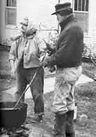 This conversation may give you some idea of what it was like that November morning butchering a hog at Elmer Simpson's. Butchering has been done for centuries, even the Bible talks of butchering. But, the day is almost past when neighbors get together to butcher their own yearly supply of meat. Nowadays most people go to the supermarket to buy what they want, or, if they raise their own hogs, they have the meat plant butcher for them. There are a few people though, who continue the old way so they can cut their meat the way they like it. Traditionally the men do the butchering, cleaning, and the cutting up of the meat. The women strip off the intestinal fat, help render the lard, make the sausage, and of course, do the cooking.
