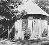 Each family did their own as simply as possible with the equipment they had--an iron kettle, hickory chips from the woodpile and a smokehouse. Every farm had a smokehouse as surely as they'd have a barn. In the Ozarks the smokehouse was usually a small rough-sawed oak building about 8 x 10 which doubled as storage and catchall. It was stripped to hold in the smoke. (see photo #23)