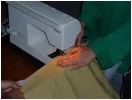 Use a sewing machine to sew the fabric to the batting material. Sew three edges together and then flip the curtain to expose the exterior.
