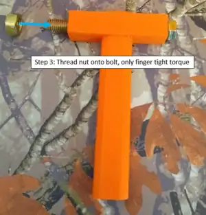 - If the hammer head warps or the hole ends up being slightly too tight, rotating the bolt clockwise will allow it to pull itself through using the threads on the bolt. This is intended to be a tight clearance hole but depending on a variety of factors there is the possibility this does not happen with every printer configuration and every set of environmental conditions. I ran into this issue on my first print and with the adjusted clearances this works as intended on my printer configuration and filament.