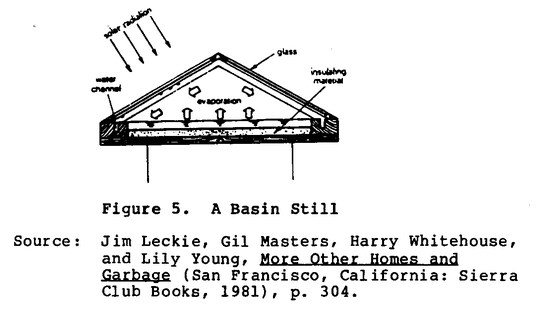 - ↑ McCracken, H., & Gordes, J. (1985). Understanding solar stills. VITA Technical Paper, (37) Retrieved from