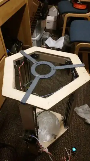 Use M3 bolts to mount arms to fixture in the insets of the fixture, shown in Figure 1. use nuts to hold in place. (superglue can be used as substitute for arm-fixture joining). Test to ensure frame fits your printer, shown in figure 2.
