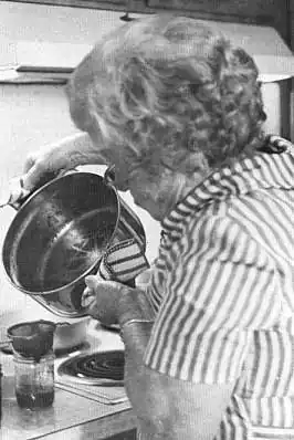 Photo 3--When the jelly is done, pour it into the hot, clean jars. To get a clearer jelly, Eppel Beard strains hers into the jar.