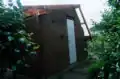 After a year of weather there were a couple of improvements that needed to be done. The first was on the retaining wall. Our original wall did not reach all the way down to the ground so a small gap was left where soil found its way through.(Fig 48) If left this could have become a great problem because it would clog up the French drain around the foundation. To fix it I just added an additional board on the bottom of the wall and made sure it was inserted into the ground about an inch so no soil could find its way through.(Fig 49) Next I decided that the ends of the rafters that were exposed on the North side needed to be covered. At first I thought they would be OK because they were stained, but I realized that with the amount of rain we get in the winter it would be better if they were covered.(Fig 50) Here I just added an additional piece of the roofing material so that it overhung the exposed ends of wood.(Fig 51) While extending the roof I discovered another problem; every screw in the roof was leaking. To fix this I backed out each screw a little bit, ran a small bead of silicon around them and tightened them back down. The silicon created a good seal and so far there have been no more leaks.