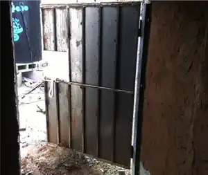 | Door cover: Water would leak through an open door in the back of the schoolroom. To prevent this a metal sheet was welded over the door. | ![]() |