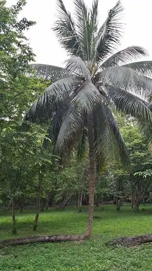 Palm fronds have been used as a traditional building material in tropical locations around the world. The time for which coconut frond thatch will last as a construction material depends on the palm species and how the thatch is harvested and woven[16] It is most ideal to choose a larger palm frond with long leaflets and it is advised to use only fresh palm fronds as opposed to dead palm fronds since fresh fronds will be less brittle and have more strength as a building material .[16] The basic process to create a coconut frond panel is as follows: the coconut frond will first need to be evenly divided from the spine of the palm frond with a machete .[16] The fifth leaflet is bent in the opposite direction of its natural growth and woven over the fourth leaflet, third leaflet, and so on using the formula (5+2+2) .[16] ‘Pegs’ should be created at intervals of 8-10 woven leaflets in order to create a hook to ensure the woven leaflets will be secured together .[16] To prevent water leakage, the leaflets must be well opened while weaving, and the woven palm frond at the end of the process must be tied together to make a complete woven panel of thatch .[16] One of the negative aspects of palm leaves is their durability. According to a thesis about construction in the Dominic Republic "There are still some houses that has roof made of palm leaves or yagua, this material is not very resistant to rain or sun so it needs to be replaced after just some years"[17]