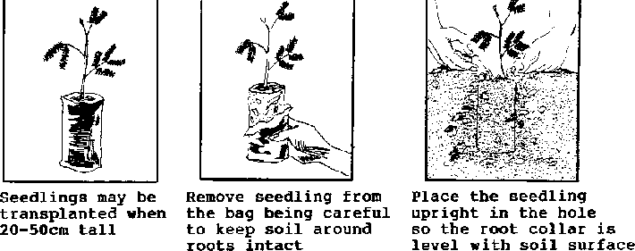 Figure 5-3 Transplanting of bagged leucaena seedlings.