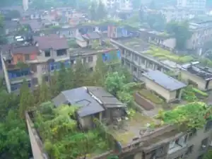 Green roof, a building rooftop covered with vegetation is used to control runoff volume, improve air and water quality and promote conservation of energy. Also known as garden roofs, intensive green roofs may have grasses, flowers, shrubs, trees, root barriers, and drainage and irrigation systems, to hold and route rain water, thus slowing the velocity of direct runoff.