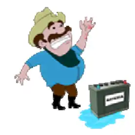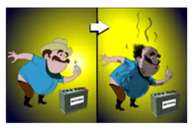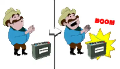 | Avoid getting the battery acid on your skin or clothes or in your eyes as it will burn. | ![]() |