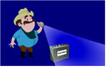 | When examining a battery, use a flashlight instead of a candle or kerosene lamp. Every month, clean the top of the battery. Clean and adjust the terminals of the battery as needed. | ![]() |