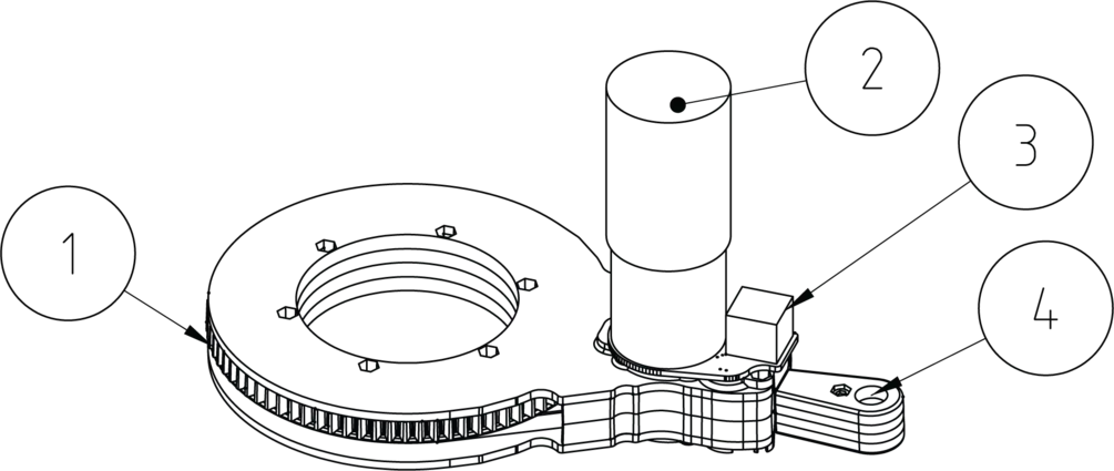 Each of the Arms consists of a plastic base, with DC motor and an encoder board attached to it. the DC motor with a gearbox, is connected through the gears to the main spool gear, around which the belt is coiled. The belt comes out of the arm between two rollers, one of which has a built-in magnet, that is used for measuring the extension of the belt.