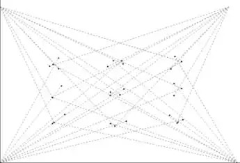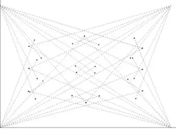 Maslow4 starts with the approximate values for the XY coordinates of the anchor points. First we retract all 4 belts to the zero position, to calibrate the zero length position for the belts. The belts are then extended and fixed to the points, and Maslow begins to mover through a 10x10 grid of points scattered over the center of the working area. At each of the points, machine retracts two of the bottom belts till they are under tension, detecting tension using the current feedback from the motors. It then takes measurements for the lengths of tensioned belts at each of the points. We get a 100 sets of belt lengths this way.