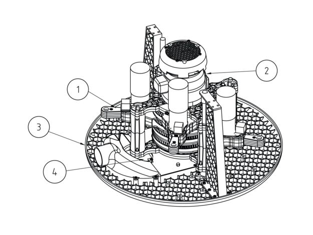 Maslow4 consists of 4 “arms” rotating around the router body, fixed between two “clamps” fixed around the router body. The router is then mounted on the “sled”, at four points, two of them are Z axis stepper motor shafts, and two - sliding on the poles attached to the sled with the help of 4 linear ball bearings.