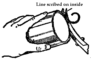 In sheet metal work, the ends of cylindrical or conical shaped jobs are best trimmed, when this is necessary, by using curved shears. The line to be followed is marked on the inside, and the shears and work held as shown in Fig. 2.