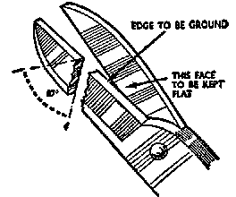 The edge is made at an angle of about 87 degrees, as shown in Fig. 3. and the burr taken off the face. Take care not to grind any metal off the face itself.