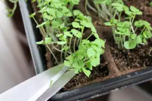 Harvesting the microgreens