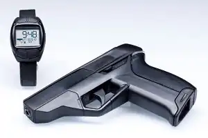 This handgun developed in Germany comes with a corresponding wrist watch. If it's more than 25cm away from it, it won't fire. It also allows tracking of statistics (shots per minute) and can be set to only shoot if it's pointed in the direction of a designated target.