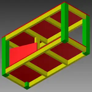 • Update (May 28, 2012) - Three equal 13.5" lengths of slotted angle bar were used in lieu of telescopic legs. The shading problem has been fixed.