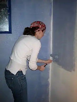 Flour paint is one of the most versatile paint types and can be used inside or outside, on wood, stone, drywall, wallpaper, earthen and gypsum plaster, masonry and to cover existing painted surfaces. This paint is very thick and can destroy brushes, but the recipe can be tweaked a little to achieve different textures. Flour paint typically consists of water, flour, colored clay and more uncolored clay filler.[30]