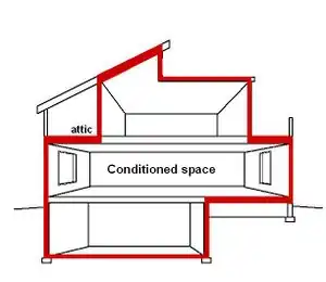 - Conditioned space is defined by the part of the building that is designed to be thermally conditioned for the comfort of occupants or for other occupancies or for other reasons. These rooms usually include living rooms, bedrooms, and kitchens. The non-conditioned spaces within a home are not meant for habitation and usually include garages, attics, basements, bathrooms, and utility closets. The relationship that these areas have to each other in terms of placement and connection will have implications on how you will treat them; in terms of energy retrofits, it is important that they are distinguished from one another.